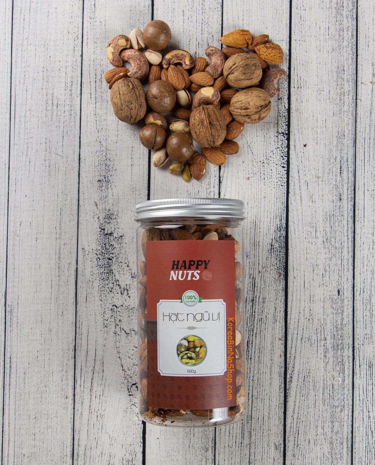 Thành phần: 100% hạnh nhân, hạt điều, hạt óc chó, hạt dẻ cười, hạt macca