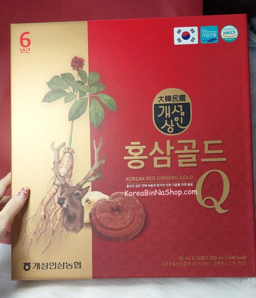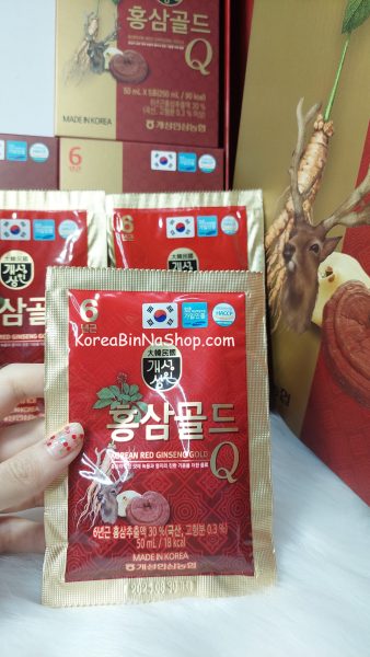 Hồng Sâm Nhung Hươu Linh Chi Hàn Quốc Q Gold GaeSeongSangIn Korean Red Ginseng Gold 50ml x 30 gói 개성상인 홍삼 골드 큐 액기스 음료