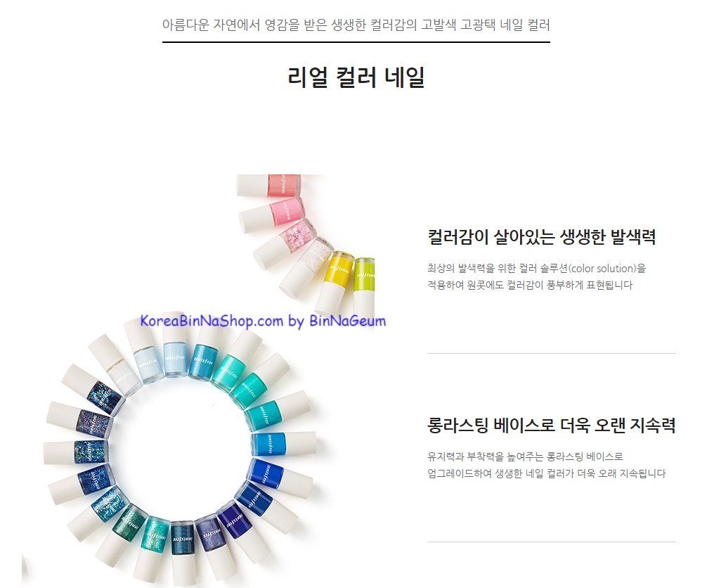 Kỉ niệm đón đông qua xuân tới, Innisfree đã cho ra một dòng sơn móng tay 봄- mùa xuân Real Color Nail với đủ các tông màu đẹp và chi tiết, đáp ứng mọi nhu cầu màu sắc cho các tín đồ làm đẹp.