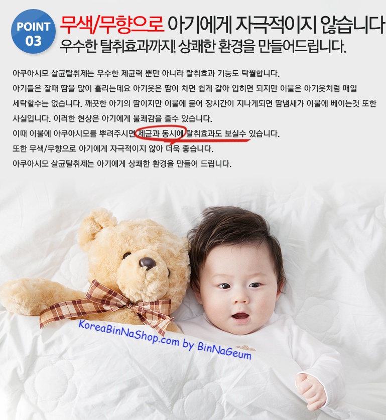 - Sản phẩm xịt khử trùng của Acquassimo Hàn Quốc có thể khả năng diệt khuẩn đến 99.9%, nhưng thành phần rất lành tính, 7 KHÔNG: không gây kích ứng cho mắt, cho da, không màu, không hương liệu, không cồn, không chất bảo quản, không Sodium Hypochlorite.